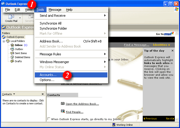 | To begin open Outlook Express | |||||