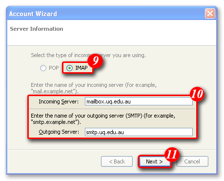 | 10)Enter 'mail.votdc.com' in the 'Incoming Server' field, and 'smtp.votdc.com' in the 'Outgoing Server' field. |