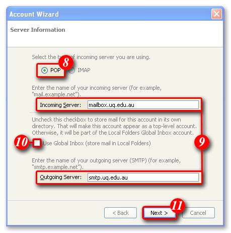| 9)Enter 'mail.votdc.com' in the 'Incoming Server' field, and 'smtp.votdc.com' in the 'Outgoing Server' field. |